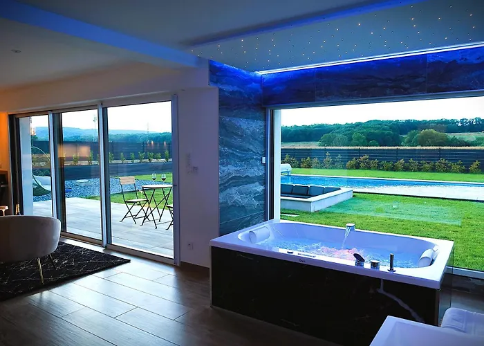 Echappee Des Hirondelles Villa med 1 sovrum, som ligger cirka 10 minuter med bil från France Aventures Amnéville, har bubbelpool och hydromassagebadkar. Villan med 1 badrum, som ligger 2 km från Parc du haut-fourneau U4, erbjuder Wi Fi och en parkering.